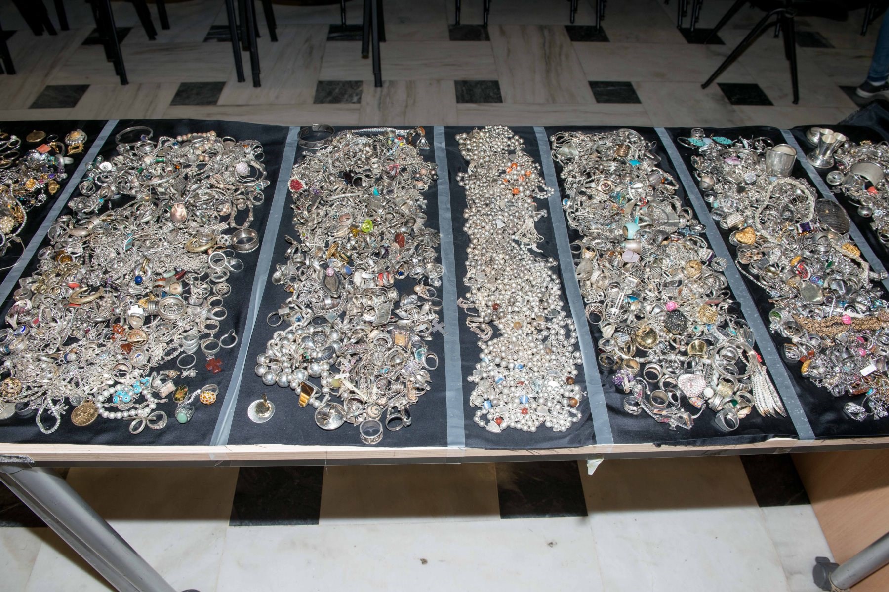 Οι αστυνομικοί στα δύο διαμερίσματα του Χαλανδρίου βρήκαν 700 κιλά κοσμήματα, 100.000 ευρώ σε μετρητά καθώς και ποσότητα διαμαντιών μεγάλης αξίας. «Αποθηκάριος» του θησαυρού ήταν ο ενεχυροδανειστής της συμμορίας και η σύζυγός του, οι οποίοι ξέπλεναν τα κλοπιμαία σε ενεχυροδανειστήρια σε Καλλιθέα, στο Φάληρο και στο Μενίδι.