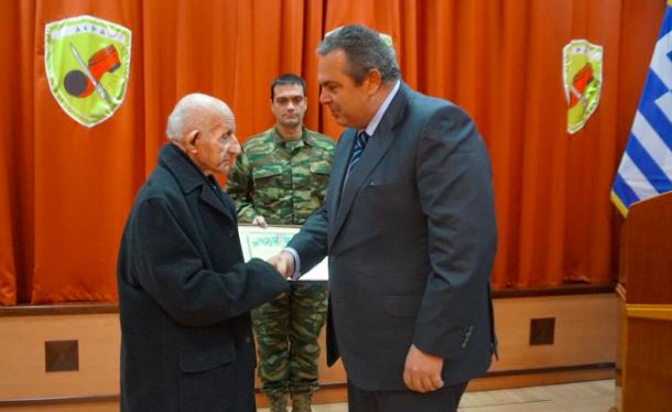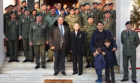 Λίγο πριν τα πυρομαχικά του τελειώσουν έδωσε εντολή στους στρατιώτες του να φύγουν για να γλιτώσουν. Ένας απ΄ αυτούς είναι ο κύριος της φωτογραφίας που χαιρετά με σεβασμό ο ΥΕΘΑ Πάνος Καμμένος.