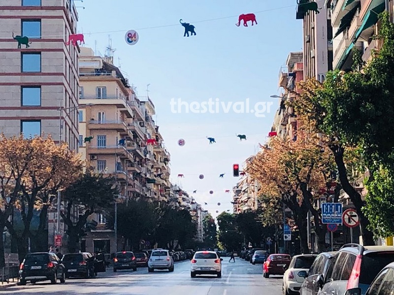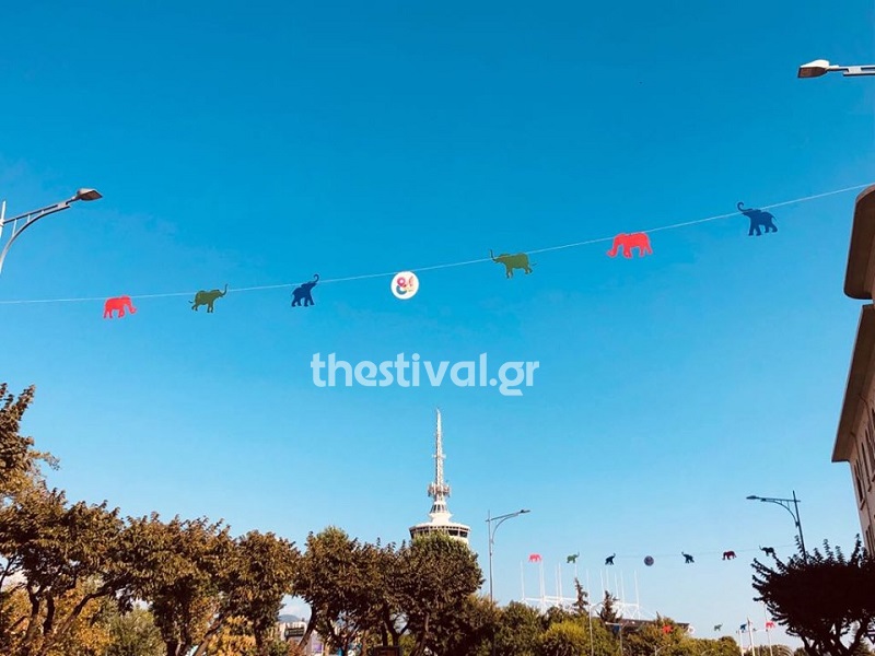 Με πολύχρωμα χάρτινα ελεφαντάκια στολίστηκαν κεντρικοί δρόμοι της Θεσσαλονίκης, στο πλαίσιο της 84ης ΔΕΘ, στην οποία τιμώμενη χώρα είναι η Ινδία.