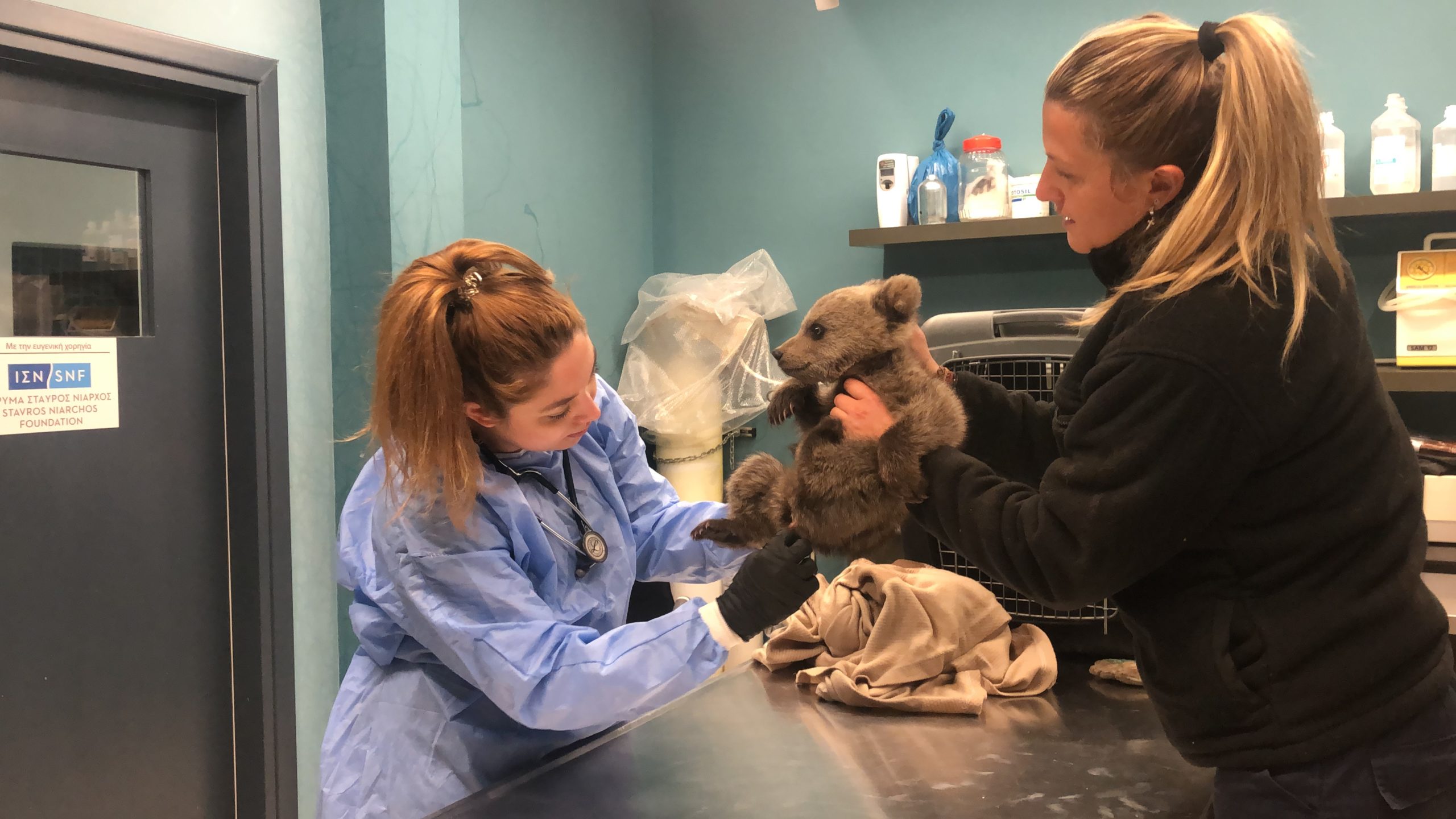 Ο πρώτος έλεγχος που έγινε στο αρκουδάκι στο Κτηνιατρείο Άγριων Ζώων του Διεθνούς Περιβαλλοντικού Κέντρου έδειξε μόνο ότι ήταν ελαφρώς λιποβαρές και υποσιτισμένο, όμως σε άριστη υγεία. Τρέφεται ήδη με ειδικό παρασκεύασμα γάλακτος, υποκατάστατο του μητρικού, ενώ ήδη δείχνει προτίμηση και σε μικρά κομμάτια φρούτων.