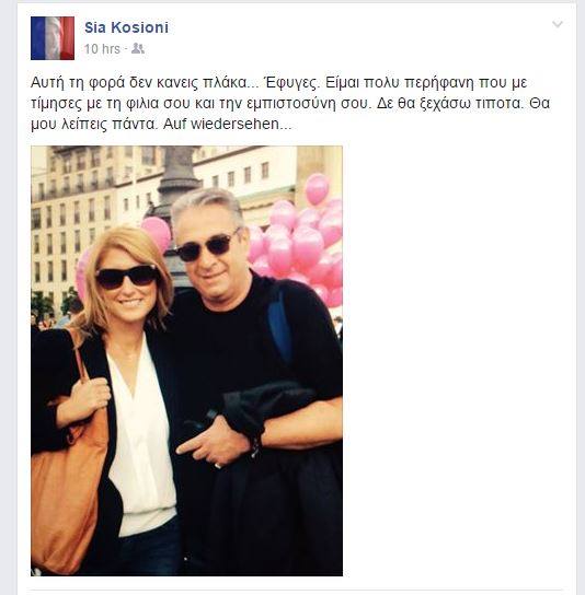 Ανάμεσα στους δημοσιογράφους που τον αποχαιρέτησαν από τα μέσα κοινωνικής δικτύωσης ήταν και η Σία Κοσιώνη, που τους έδενε μία πολύ στενή φιλία όλα αυτά τα χρόνια της επαγγελματικής τους συνεργασίας.