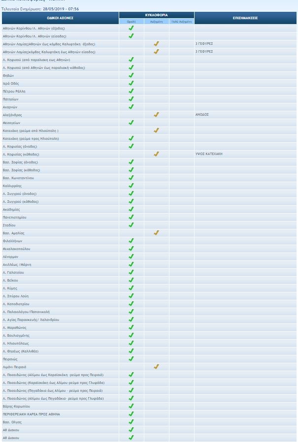 Σύμφωνα με την ενημέρωση από την Τροχαία αυξημένη κίνηση παρατηρείται στα εξής σημεία: Αθηνών-Λαμίας (Αθηνών έως κόμβος Καλυφτάκη -έξοδος), Αθηνών-Λαμίας (κόμβος Καλυφτάκη έως Αθηνών- είσοδος), Αλεξάνδρας (άνοδος), Κατεχάκη (ρεύμα από Ηλιούπολη), Λ. Κηφισίας (κάθοδος) ύψος Κατεχάκη, Βασ. Αμαλίας, Λιμάνι Πειραιά.