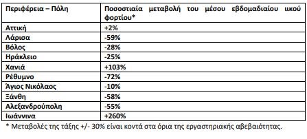 Οι καθαρά πτωτικές τάσεις κυμάνθηκαν από -55% στην Αλεξανδρούπολη έως -72% στο Ρέθυμνο, ενώ οριακές ήταν οι μειώσεις στο Βόλο (-28%) και στο Ηράκλειο (-25%). Σταθερό παρέμεινε ουσιαστικά το ιικό φορτίο στον Άγιο Νικόλαο (-10%) και στην Περιφέρεια Αττικής (+2%).