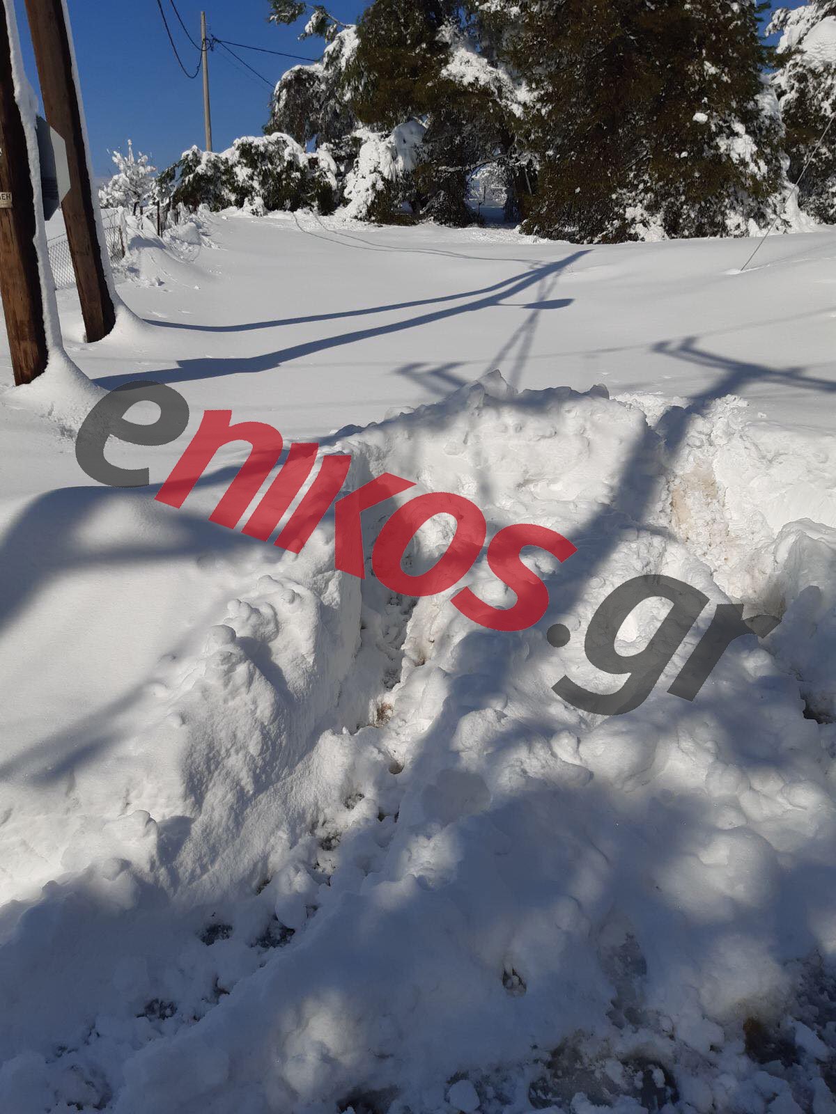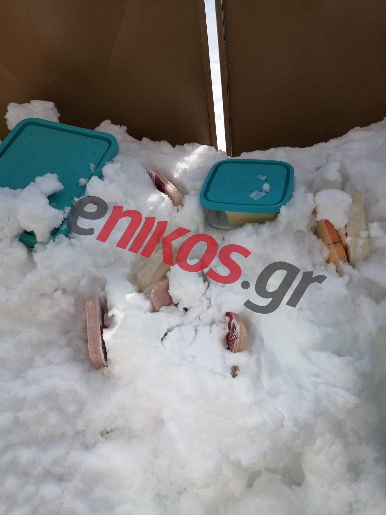 Απελπιστική είναι η κατάσταση στο Καπανδρίτι Αττικής του Δήμου Ωρωπού, καθώς και στα όμορα χωριά Πολυδένδρι και Αφίδνες. Όπως καταγγέλλει ο κοινοτικός σύμβουλος Καπανδριτίου, Σπύρος Καρακίτσος, τα μισά σπίτια έχουν μείνει χωρίς ρεύμα για δεύτερο 24ωρο. Σύμφωνα με τον ίδιο ανοιχτός είναι μόνο ο κεντρικός δρόμος, όλοι οι παράδρομοι είναι αποκλεισμένοι από το χιόνι. “Τα περισσότερα σπίτια είναι αποκλεισμένα. Στον οικισμό Μικροχώρι Καπανδριτίου η κατάσταση είναι ακόμη πιο τραγική, χωρίς νερό και χωρίς ρεύμα, πλήρως αποκλεισμένοι”, αναφέρει και στέλνει τις παρακάτω φωτογραφίες στο enikos.gr από το πέρασμα της κακοκαιρίας “Μήδεια“. Όπως βλέπετε αντί τα τρόφιμα αποθηκεύονται στο… χιόνι, αφού δεν υπάρχει ρεύμα.