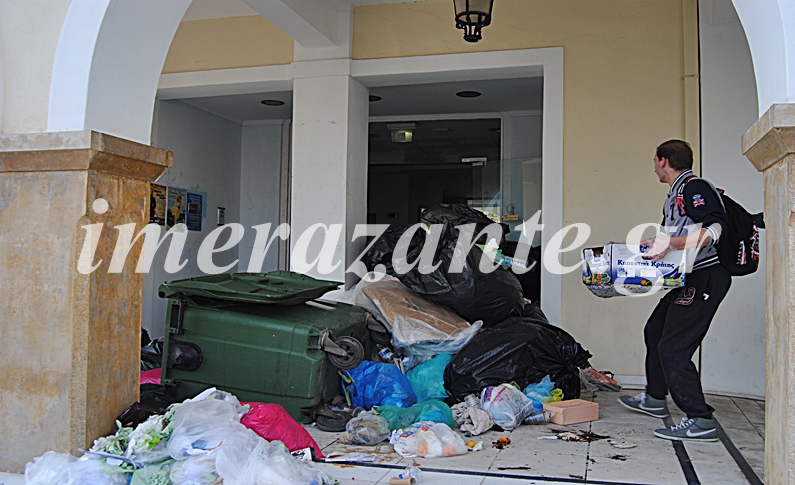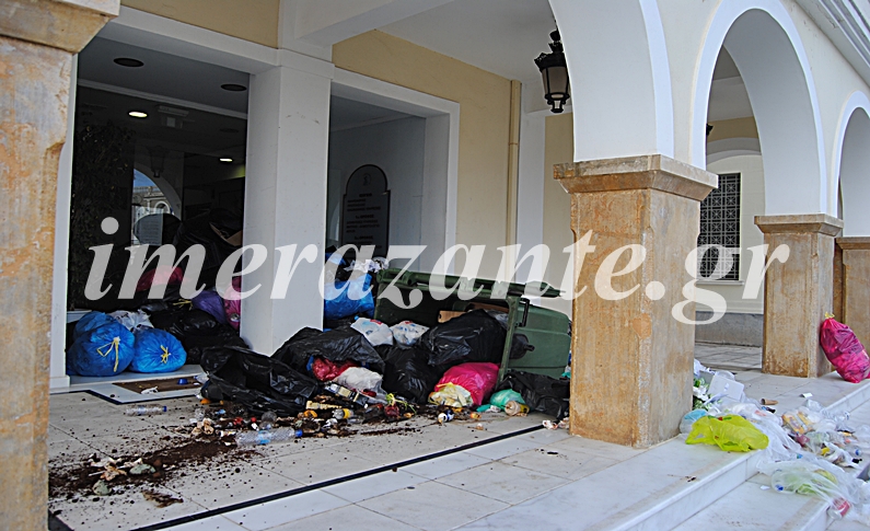 Πετώντας αυγά, ντομάτες και πορτοκάλια στο Δημαρχείο Ζακύνθου και στοιβάζοντας σκουπίδια έξω από το κτίριο, πολίτες και μαθητές, διαμαρτυρήθηκαν για την αφόρητη κατάσταση που επικρατεί στο νησί, λόγω των χιλιάδων τόνων σκουπιδιών στους δρόμους, μετά τον εικοσαήμερο αποκλεισμό του ΧΥΤΑ του Σκοπού από τους κατοίκους του Καλαμακίου.