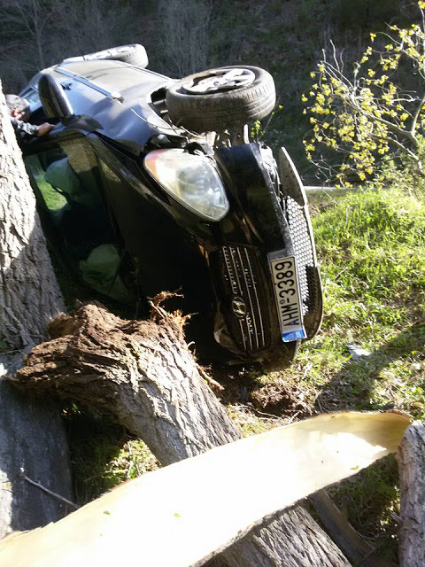 Συγκεκριμένα, το ΙΧ κάτω από αδιευκρίνιστες μέχρι στιγμής συνθήκες εξετράπη της πορείας του, έπεσε πάνω σε μια πινακίδα οδικής σήμανσης, ανετράπη και κατέληξε πάνω σε ένα δέντρο. Για καλή του τύχη ο οδηγός βγήκε σώος από το όχημα, το οποίο υπέστη υλικές ζημιές, ενώ το δέντρο πάνω στο οποίο κατέληξε ξεριζώθηκε.
