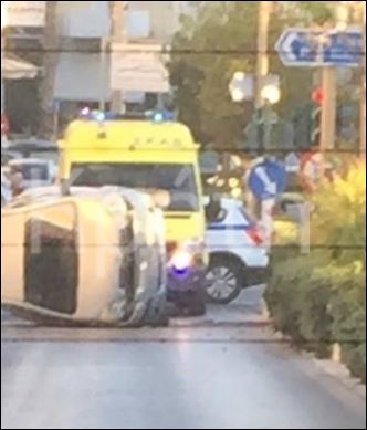 Πριν από λίγη ώρα ο οδηγός έχασε τον έλεγχο του αυτοκινήτου με αποτέλεσμα αυτό να γυρίσει στο πλάι. Σύμφωνα με πληροφορίες, δεν φαίνεται να έχει τραυματιστεί κανείς.
