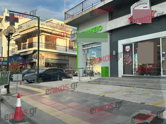Το μπέρδεμα γίνεται χειρότερο αν παρατηρήσει κάποιος την κίτρινη διαγράμμιση πάνω στο πεζοδρόμιο μπροστά από το κατάστημα προς εξυπηρέτηση προφανώς των πελατών που θέλουν να σταματήσουν για λίγο και να κάνουν τα ψώνια τους στο μαγαζί ώστε να διευκολύνονται.