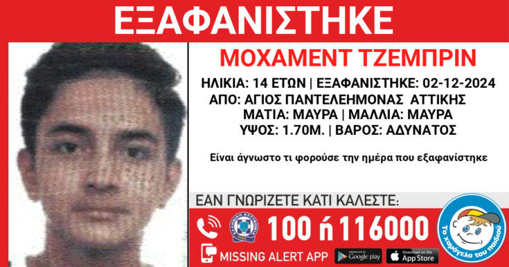 Τα ίχνη του 14χρονου Μοχάμεντ Τζεμπρίν (Mohammed Jebreen), Παλαιστινιακής καταγωγής, χάθηκαν στις 02/12/2024 πρωινές ώρες.