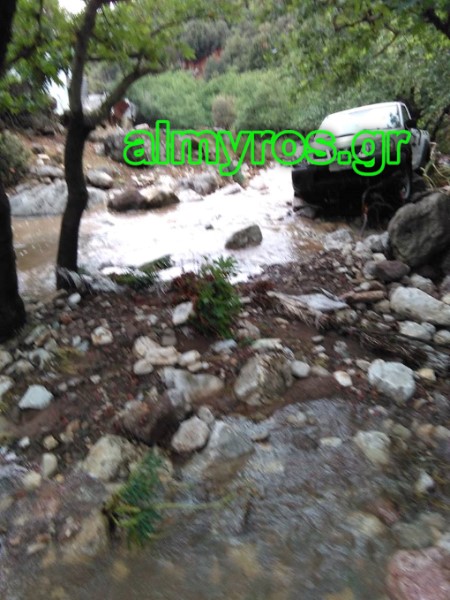 Μέχρι στιγμής, οι άνδρες της ΕΜΑΚ που επεμβαίνουν στη δύσβατη περιοχή εντόπισαν μόνο το αυτοκίνητο του αγνοούμενου, που όπως φαίνεται παρασύρθηκε από τον χείμαρρο.