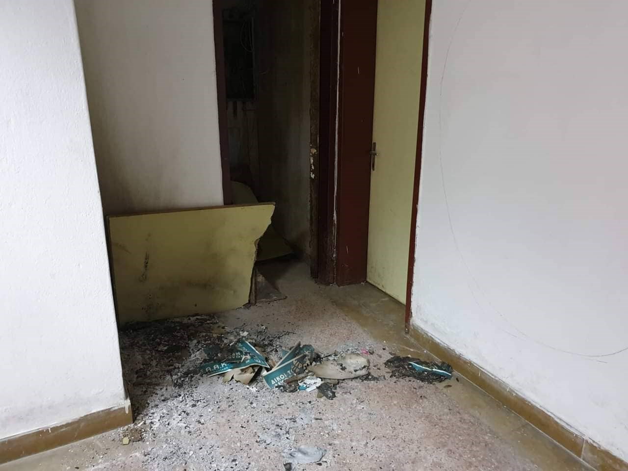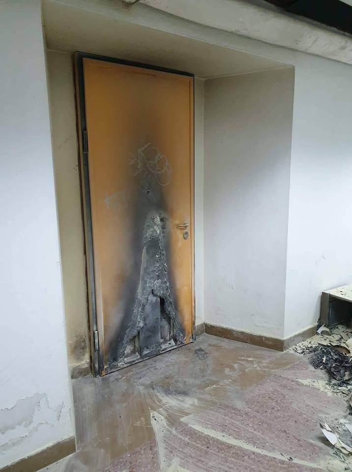 Οι άγνωστοι άναψαν φωτιά με αποτέλεσμα να προκληθούν φθορές σε μια πόρτα αλλά και στον διάδρομο.