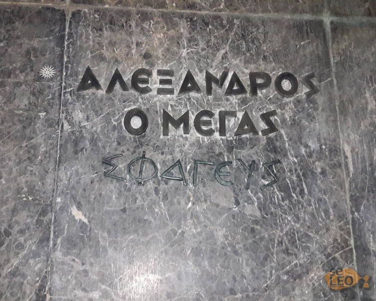 Όπως αναφέρει το seleo.gr οι άγνωστοι έγραψαν κάτω από το όνομά του τη λέξη “σφαγευς” με αρχαιοελληνικούς χαρακτήρες.