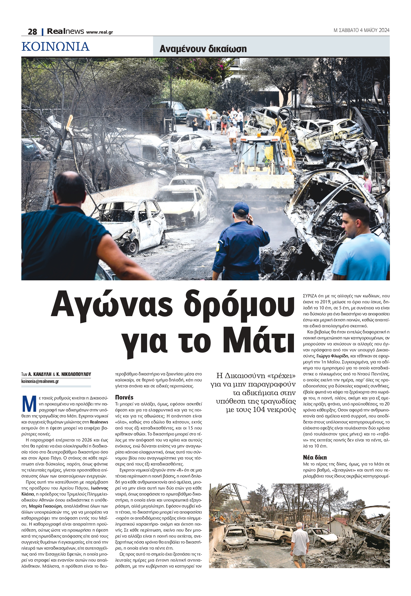 Η Δικαιοσύνη «τρέχει» για να μην παραγραφούν τα αδικήματα στην υπόθεση της τραγωδίας στο Μάτι με τους 104 νεκρούς. Η παρέμβαση της προέδρου του Αρείου Πάγου για να καθαρογραφεί γρήγορα η πρωτόδικη απόφαση και να ανοίξει ο δρόμος για την άσκηση έφεσης. Στο δευτεροβάθμιο δικαστήριο, που μπορεί να ξεκινήσει μέσα στο καλοκαίρι, θα καθίσουν στο εδώλιο τόσο οι έξι καταδικασθέντες όσο και οι 15 που κρίθηκαν αθώοι. Τι μπορεί να αλλάξει για τα ελαφρυντικά και τις ποινές. Έγκριτοι νομικοί και συγγενείς των θυμάτων μιλούν στην «R» για την επόμενη ημέρα του δικαστικού αγώνα.