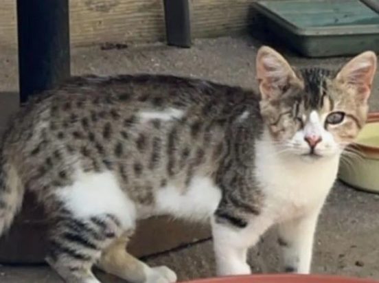 Το γατάκι είναι τυφλό, όπως επισημαίνει η ιδιοκτήτριά του, η οποία υποστήριξε ότι της πρόσφεραν από την αεροπορική εταιρεία 100 ευρώ ως αποζημίωση σαν να χάθηκε βαλίτσα.