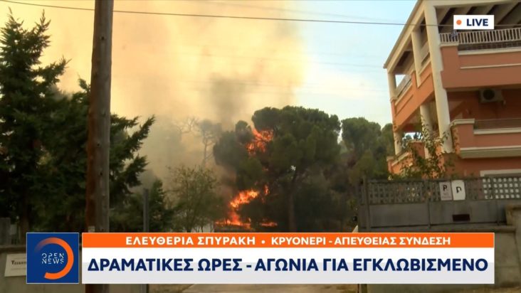 Οι πύρινες φλόγες έχουν μπει και στο Κρυονέρι Αττικής. Σπίτια έχουν τυλιχτεί στις φλόγες, δέντρα γίνονται στάχτη και επικρατεί πανικός, με τις πυροσβεστικές δυνάμεις και τους εθελοντές να δίνουν μεγάλη μάχη, χωρίς, ωστόσο, να είναι σε θέση να βάλουν ένα φρένο σε αυτόν τον πύρινο εφιάλτη, τη στιγμή που και οι άνεμοι δυναμώνουν. Οι σκηνές που εκτυλίσσονται είναι δραματικές. Οι άνθρωποι φεύγουν από τα σπίτια τους, μαζεύοντας λιγοστά πράγματα και παίρνοντας μαζί τα κατοικίδιά τους για να σωθούν από τις φλόγες. Στις εικόνες που καταγράφει το ΟΡΕΝ από την περιοχή, καταγράφονται οι αγωνιώδεις προσπάθειες ενός άνδρα να βρει κάποιον δικό του άνθρωπο. “Αλέξανδρε, έλα έξω”, φωνάζει και το βλέμμα του είναι στραμμένο προς ένα σπίτι. Οι φωνές του είναι μαχαίρι στην καρδιά.