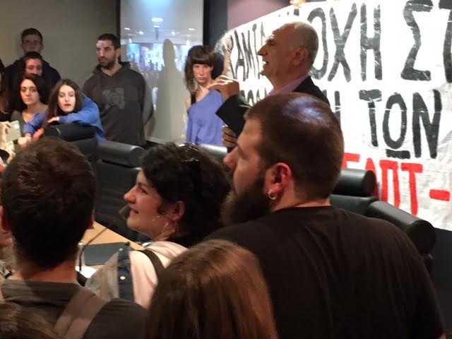 Σε κατάληψη της αίθουσας του επιμελητηρίου Αιτωλοακαρνανίας στο Αγρίνιο προχώρησαν φοιτητές πανεπιστημιακών τμημάτων της πόλης, λίγη ώρα πριν ξεκινήσει την ομιλία της η αναπληρώτρια υπουργός Εργασίας και Κοινωνικών Ασφαλίσεων Ράνια Αντωνοπούλου.