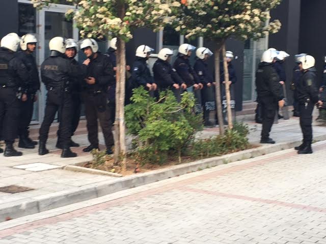 Έξω από το κτίριο του επιμελητηρίου βρίσκονται ισχυρές αστυνομικές δυνάμεις.