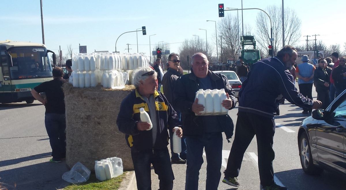 Περίπου 2 τόνους γάλακτος σε συσκευασίες 1,5 λίτρου μοίρασαν το μεσημέρι της Δευτέρας οι Τρικαλινοί α��ρότες στο μπλόκο της Εθνικής Οδού Τρικάλων-Καρδίτσας.