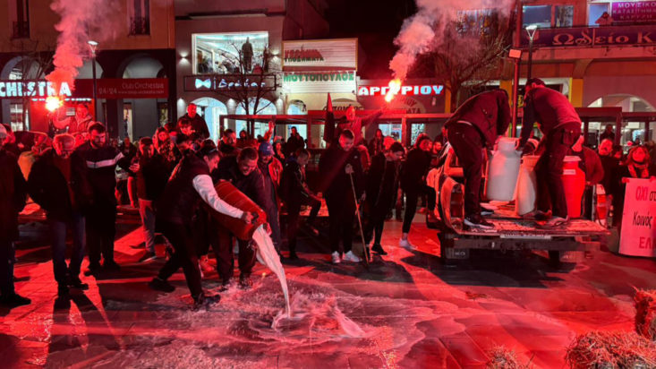 Στο κέντρο της Καρδίτσας μπήκαν αυτή την ώρα οι αγρότες, όπου πέταξαν γάλατα και άχυρο στην κεντρική πλατεία. Την ίδια ώρα, προχώρησαν και στον αποκλεισμό της Εθνικής Οδού Θεσσαλονίκης – Νέων Μουδανιών.