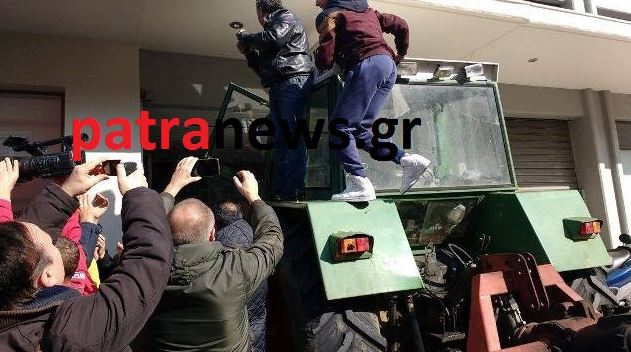 Με ένα πρωτότυπο τρόπο θέλησε να διαμαρτυρηθεί ένας αγρότης από τη δυτική Αχαΐα, καθώς εισέβαλε με το τρακτέρ του στην είσοδο της Γ’ ΔΟΥ στην Ακτη Δυμαίων.