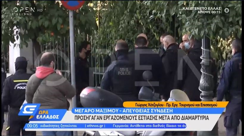 Αιφνιδιαστική διαμαρτυρία στο Μέγαρο Μαξίμου πραγματοποίησαν πριν από λίγο εργαζόμενοι στην εστίαση.