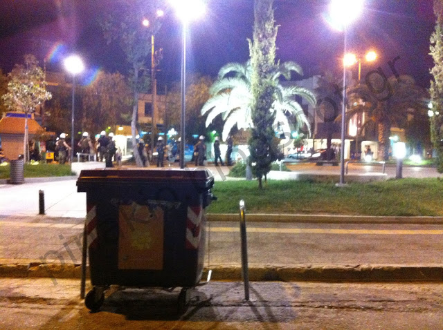 Στο σημείο βρέθηκε και διμοιρία των ΜΑΤ που παρακολουθούσε διακριτικά την εξέλιξη της πορείας.