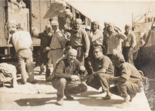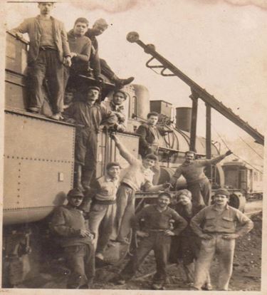1958.. στο ”Γαλλικό” σταθμό της Αλεξανδρούπολης. Οι ατμομηχανές είχαν σαν καύσιμη ύλη το κάρβουνο, και οι δουλειά των εργατών ήταν να γεμίζουν τις αποθήκες των ατμομηχανών με αυτό. – Από το αρχείο του κ. Αντώνη Μπαλούτσου / Γειτονιές και Αναμνήσεις της Αλεξανδρούπολης (που αλλάζει..)