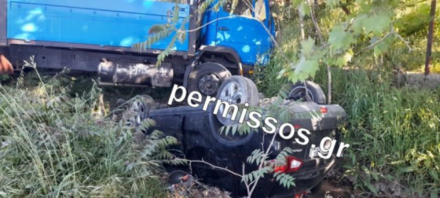 Το αυτοκίνητο αναποδογύρισε και καρφώθηκε κυριολεκτικά κάτω από το φορτηγό.
