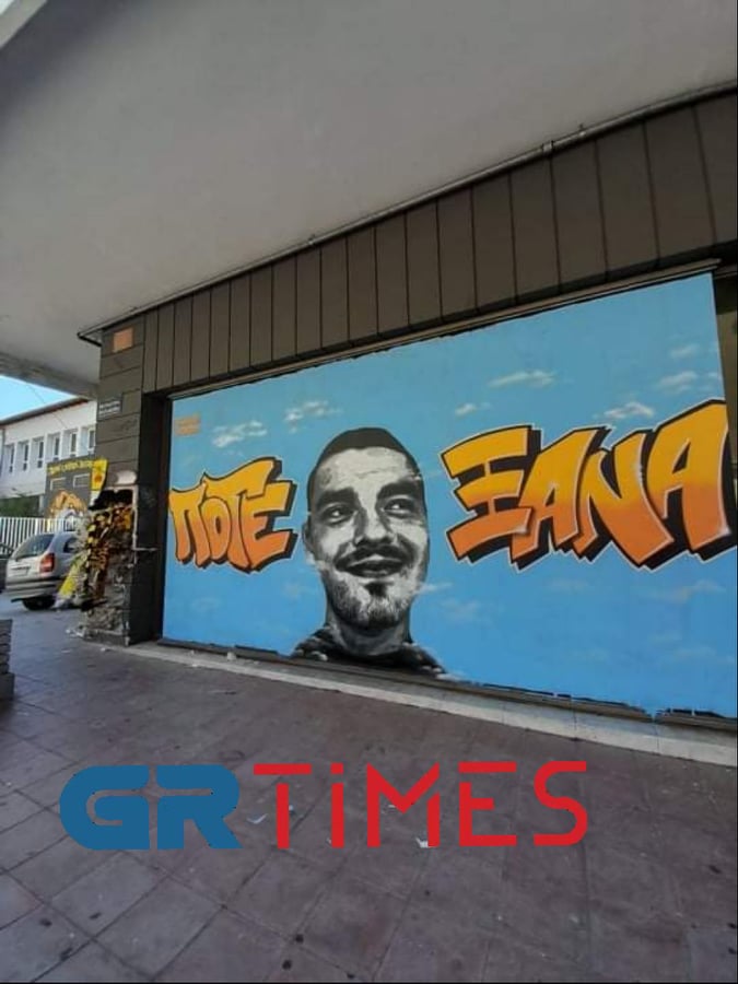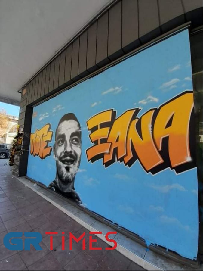 Ένα νέο graffiti στη μνήμη του Άλκη Καμπανού, του 19χρονου που έχασε τη ζωή του έπειτα από άγρια επίθεση οπαδών του ΠΑΟΚ στη Θεσσαλονίκη, δημιούργησαν δύο καλλιτέχνες κοντά στο σημείο της δολοφονίας του.