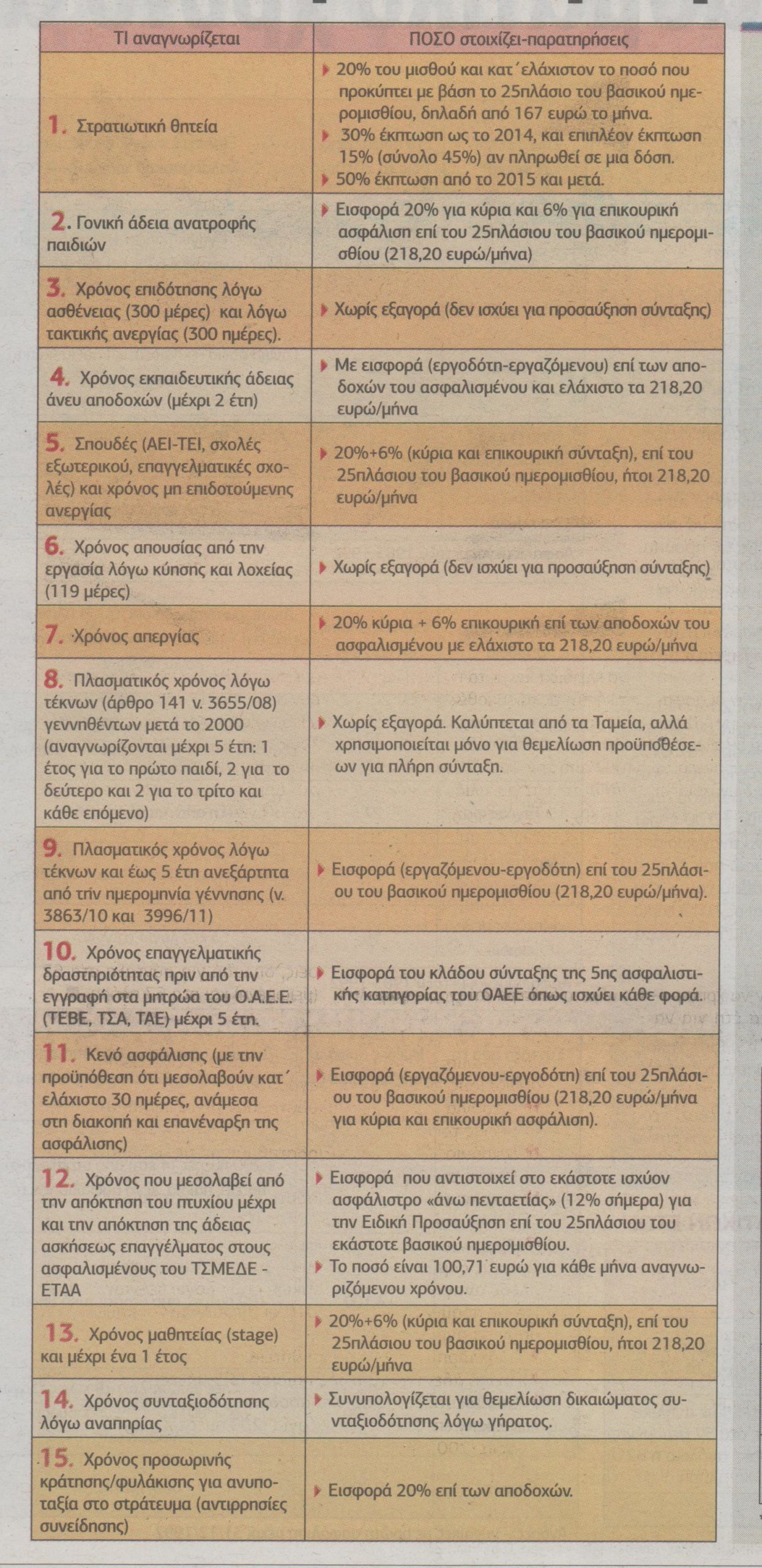 Η επιλογή αναγνώρισης πλασματικού χρόνου για κατοχύρωση ή θεμελίωση συνταξιοδοτικού δικαιώματος μπορεί να γίνει μέσα από 15 επιλογές και αφορά πάνω από 800.000 παλαιούς και νέους ασφαλισμένους σε ΙΚΑ, Δημόσιο, Ταμεία ΔΕΚΟ και τραπεζών, ΟΑΕΕ και ΕΤΑΑ, οι περισσότεροι εκ των οποίων είναι ασφαλισμένοι, πριν από το 1993.