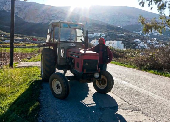 «Θα προσπαθήσω να στήνω κάθε μέρα, για όσο μπορώ, το δικό μου μπλόκο. Το κάνω γιατί κινδυνεύει να χαθεί η παράδοσή μας». Αυτά τα λόγια επαναλάμβανε στο enikos.gr ο 56χρονος Βαγγέλης Βλαβιάνος, ο οποίος μετέτρεψε το τρακτέρ του σε σύμβολο διαμαρτυρίας. Στην Αιγιάλη της Αμοργού, μακριά από τις εθνικές οδούς και τα μεγάλα αγροτικά μέτωπα, ένας άνθρωπος ύψωσε τη δική του φωνή, προκειμένου να συμπαρασταθεί στους συναδέλφους του που βρίσκονται στα μπλόκα για 18η ημέρα, ζητώντας συνεχίσουν να ασκούν με αξιοπρέπεια το επάγγελμά τους.