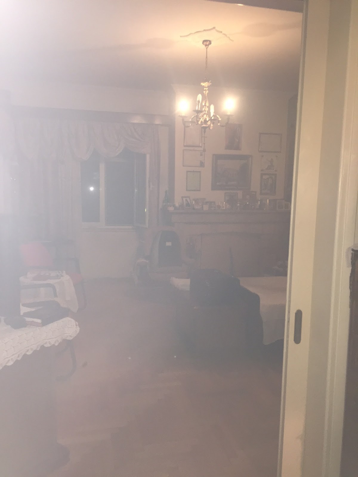 5. Προχωρώ τώρα προς το συνεχόμενον δωμάτιον, το υπνοδωμάτιόν μου. Ανοίγω το φώς. Και τότε βλέπω, ότι πυκνός καπνός κυριαρχεί και εκεί παντού! Η ατμόσφαιρα είναι πνιγηρά! Ανοίγω τα παράθυρα…