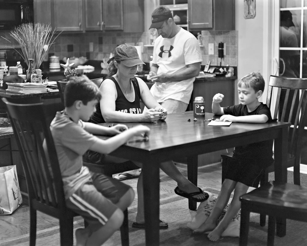 «Νομίζω πως η πιο δυνατή εικόνα για μένα είναι αυτή με τη γυναίκα μου στο κρεβάτι μας, την οποία τιτλοφόρησα ”Angie and me”. Θυμάμαι ότι είχα ξαπλώσει και όπως συνήθως τσέκαρα τα e-mails μου όταν αισθάνθηκα τα μάτια μου να κλείνουν από τη νύστα. Ξύπνησα από τον ήχο που έκανε το κινητό μου πέφτοντας στο πάτωμα. Πριν το σηκώσω κοίταξα τη μισάνοιχτη παλάμη μου, είχε μείνει στη θέση που το κρατούσα ακριβώς στο σχήμα του κινητού. Τότε κατάλαβα με ποιον ακριβώς τρόπο έπρεπε να δουλέψω αυτή τη σειρά. Μόλις δεις τον εαυτό σου μια απ΄αυτές τις φωτογραφίες, αντιλαμβάνεσαι τι ακριβώς συμβαίνει. Κι εγώ συχνά χρειάζομαι μια υπενθύμιση να αφήσω κάτω το κινητό μου, είναι ένα είδος εθισμού» λέει ο ίδιος ο φωτογράφος.