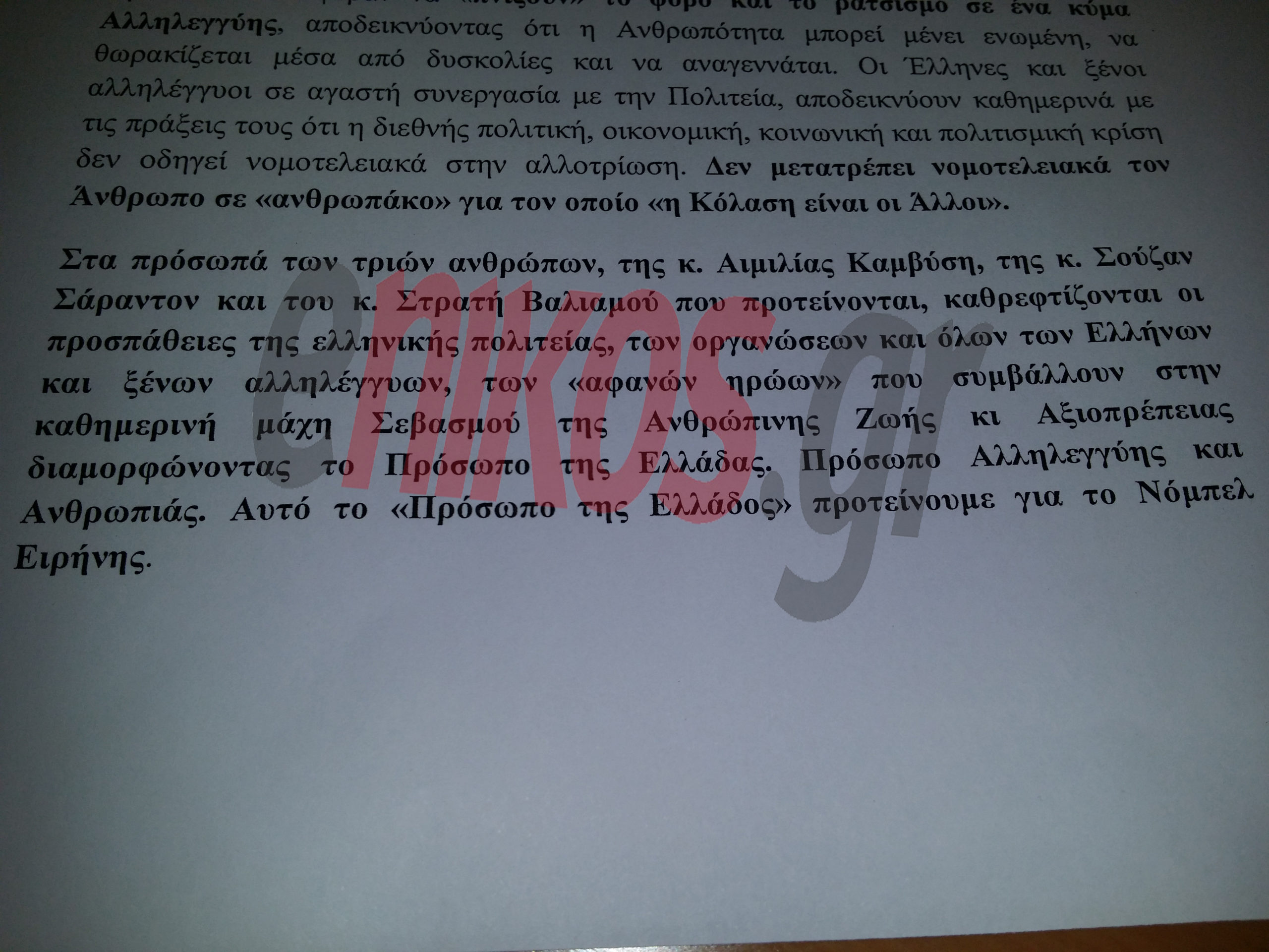 Παρουσιάστηκε, η υποβολή πρότασης στη Νορβηγική Επιτροπή Νόμπελ, για το βραβείο Νόμπελ Ειρήνης.