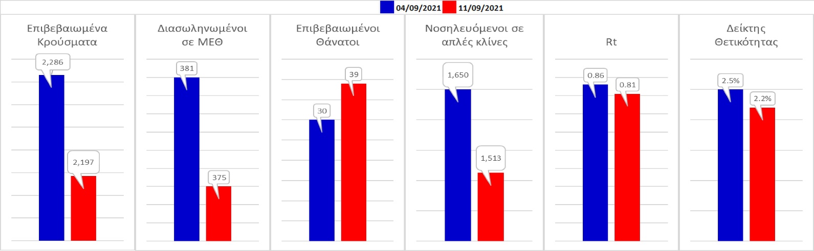 Σχήμα 58. Συγκριτικά αποτελέσματα της επιδημιολογικής εικόνας του σημερινού Σαββάτου (11/09/2021) σε σχέση με το προηγούμενο (04/09/2021)