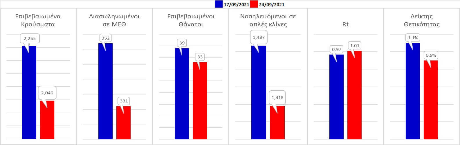 Σχήμα 58. Συγκριτικά αποτελέσματα της επιδημιολογικής εικόνας της σημερινής Παρασκευής (24/09/2021) σε σχέση με την προηγούμενη (17/09/2021)