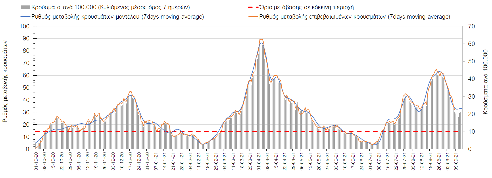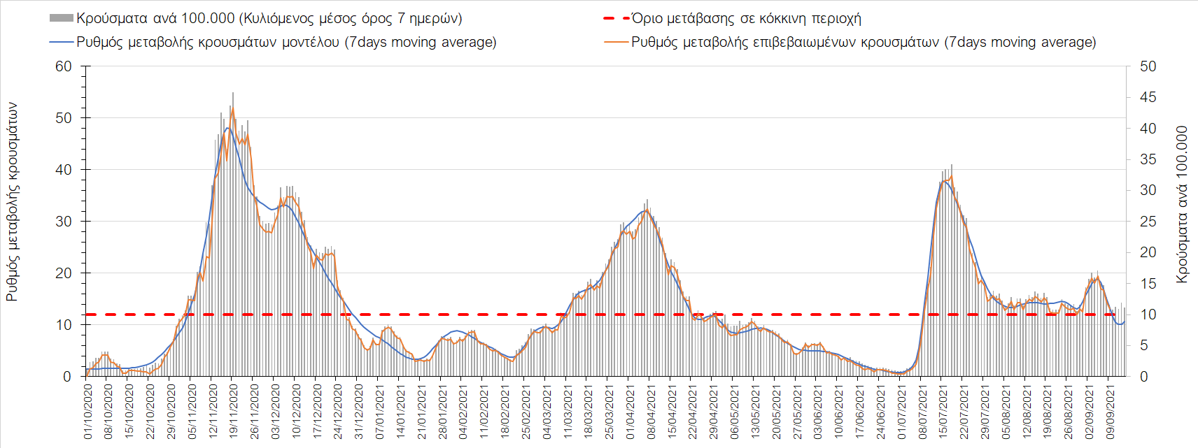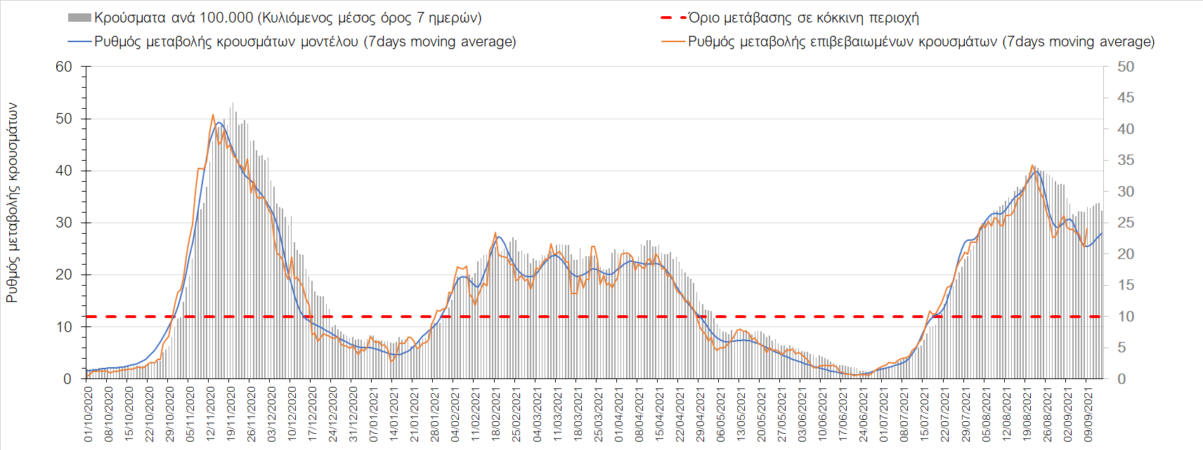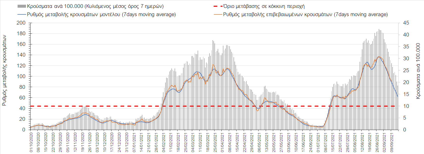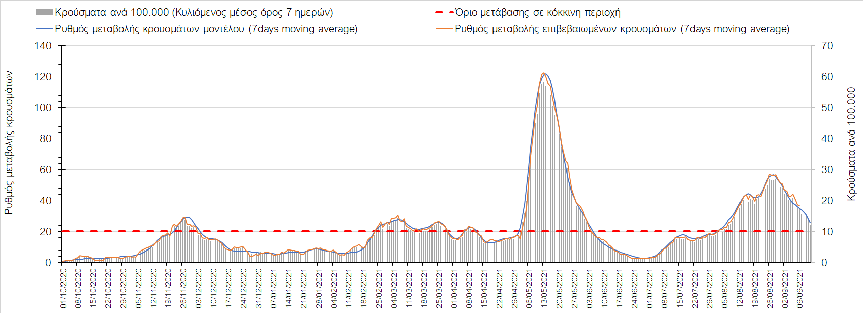 Πλέον αρχίζει να διαμορφώνεται διαφορετική κατάσταση σε σχέση με τις προηγούμενες εβδομάδες, όπου η διασπορά των κρουσμάτων διαχέονταν πλέον στις περισσότερες περιοχές της χώρας (κυρίως λόγω μετακίνησης πληθυσμών για παραθερισμό και λόγω τουριστικών ροών). Αναμένουμε τις επόμενες ημέρες για να δούμε τις επιπτώσεις της επιστροφής του κύματος εξόδου του Αυγούστου στην πορεία της πανδημίας.