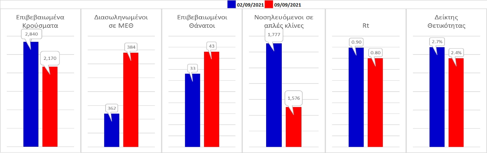Σχήμα 58. Συγκριτικά αποτελέσματα της επιδημιολογικής εικόνας της σημερινής Πέμπτης(09/09/2021) σε σχέση με την προηγούμενη (02/09/2021)