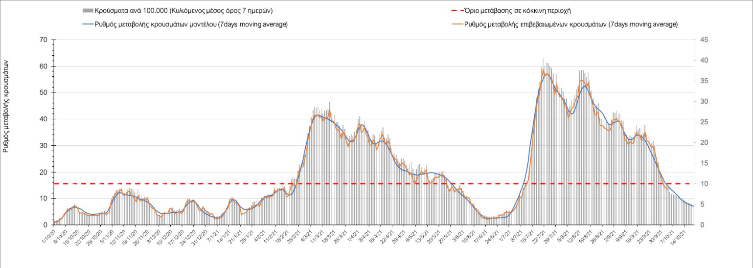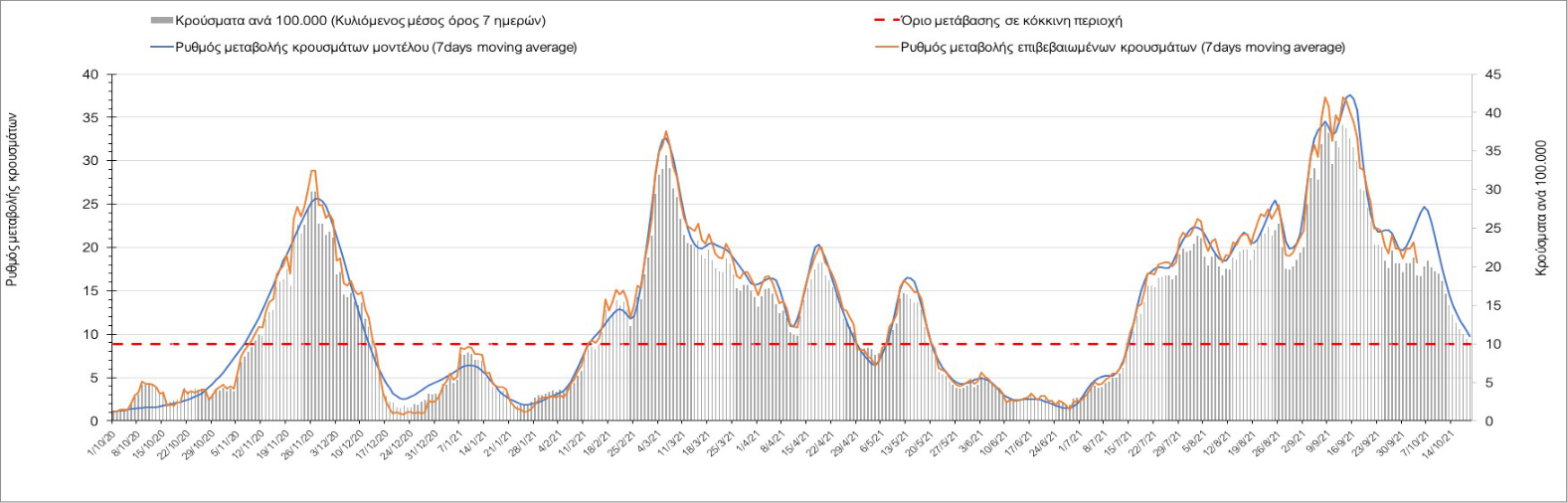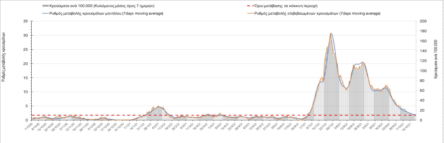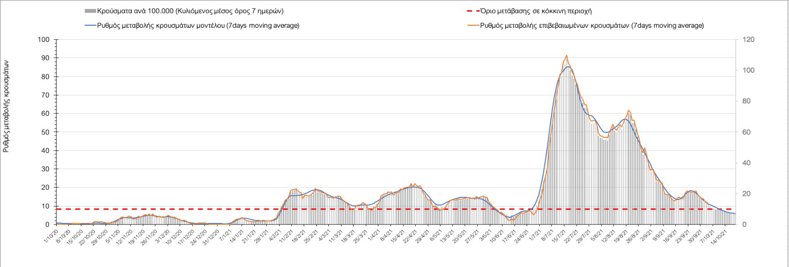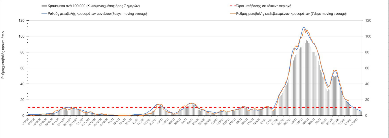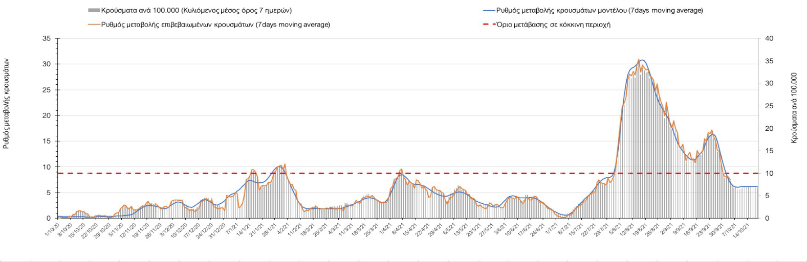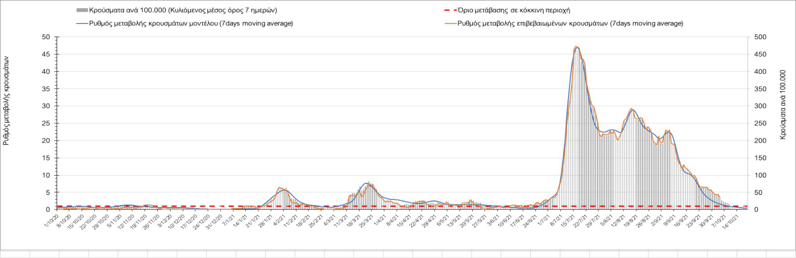 Αξίζει επίσης να σημειωθεί ότι οι υψηλές θερμοκρασίες των προηγουμένων ημερών, συντέλεσαν στη μείωση της μεταδοτικότητας και συνέβαλλαν στη συγκράτηση του αριθμού των κρουσμάτων.