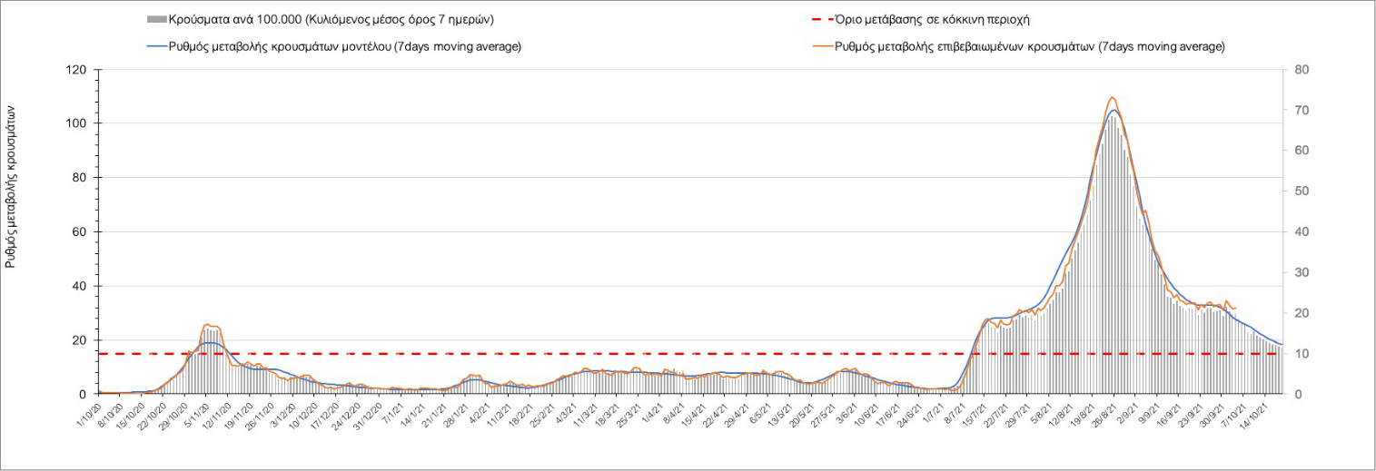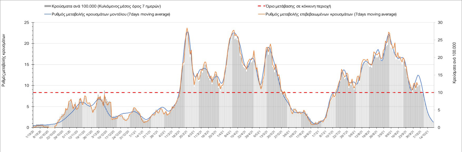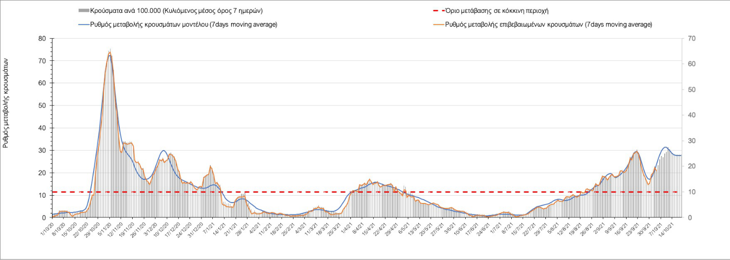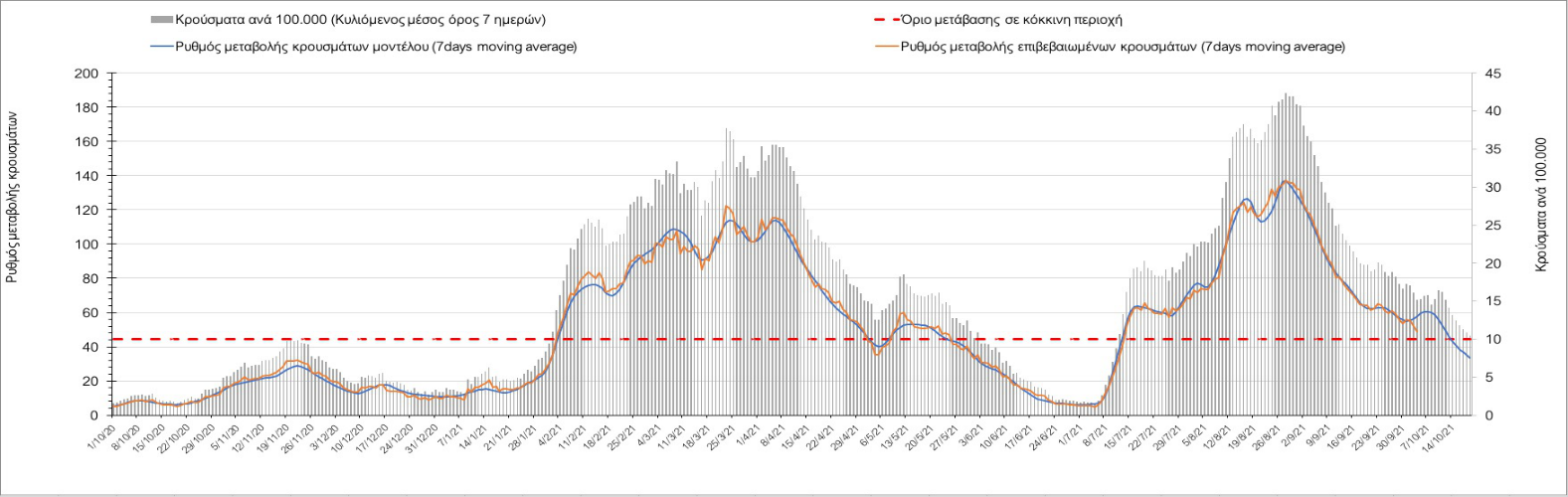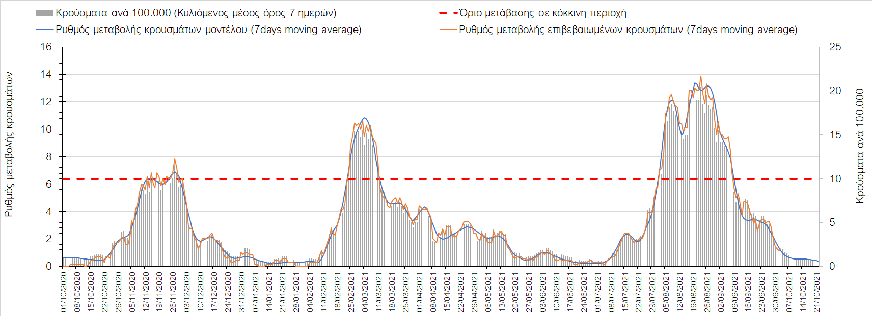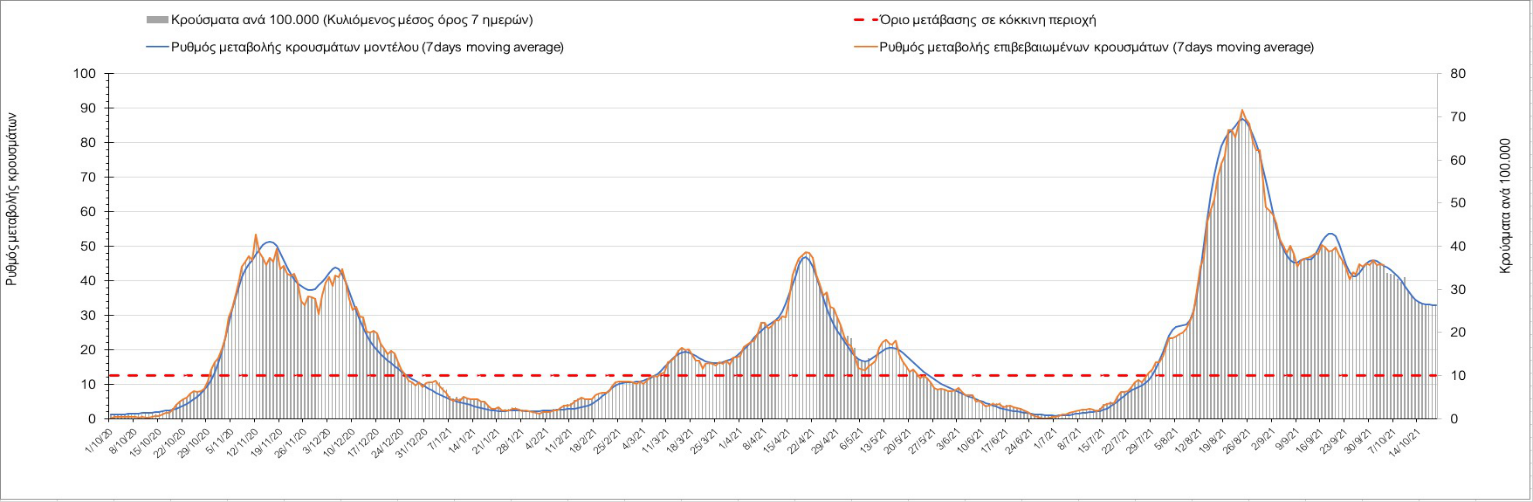Αξίζει επίσης να σημειωθεί ότι οι υψηλές θερμοκρασίες των προηγουμένων ημερών, συντέλεσαν στη μείωση της μεταδοτικότητας και συνέβαλλαν στη συγκράτηση του αριθμού των κρουσμάτων.