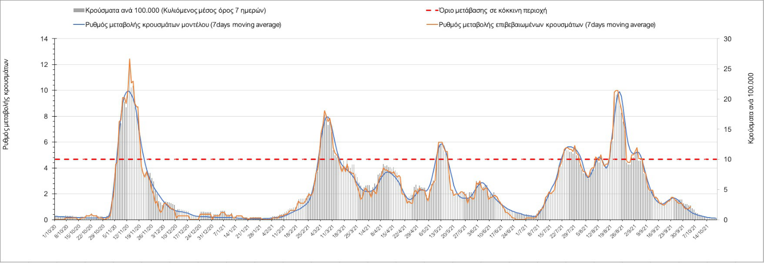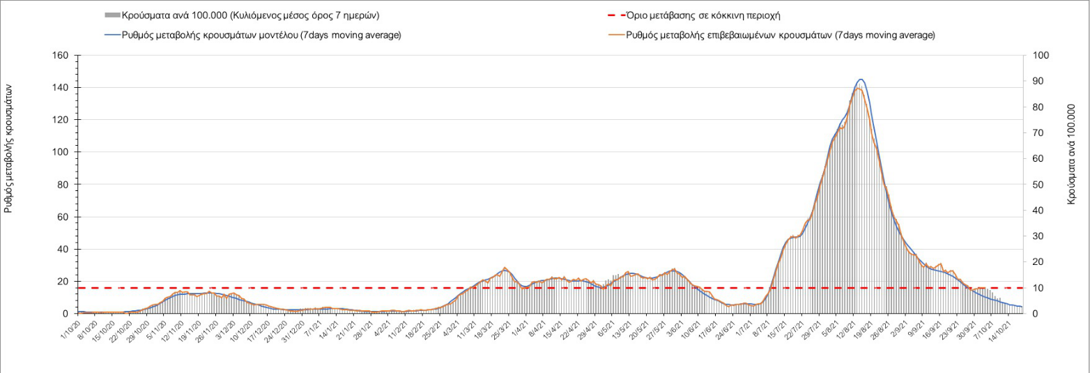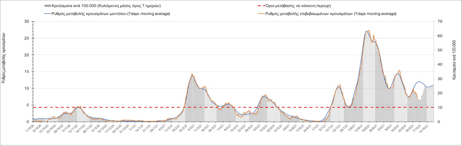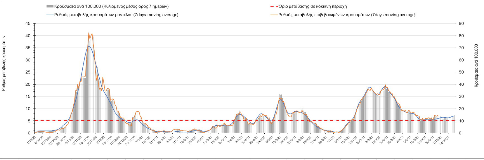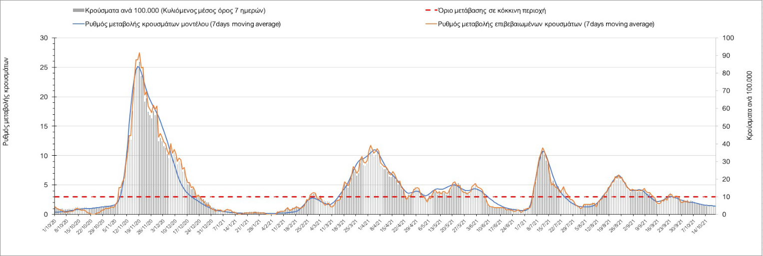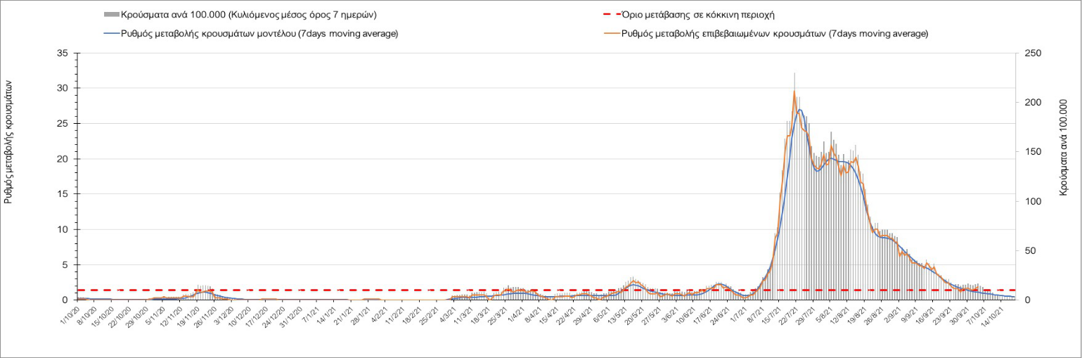 Αξίζει επίσης να σημειωθεί ότι οι υψηλές θερμοκρασίες των προηγουμένων ημερών, συντέλεσαν στη μείωση της μεταδοτικότητας και συνέβαλλαν στη συγκράτηση του αριθμού των κρουσμάτων.
