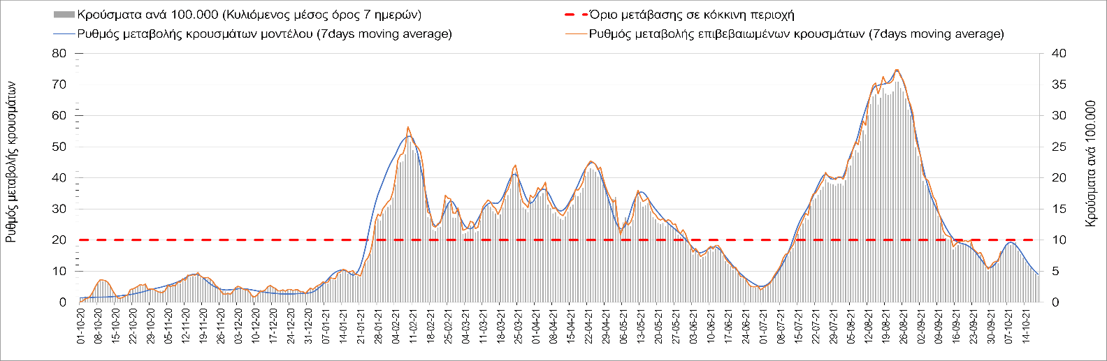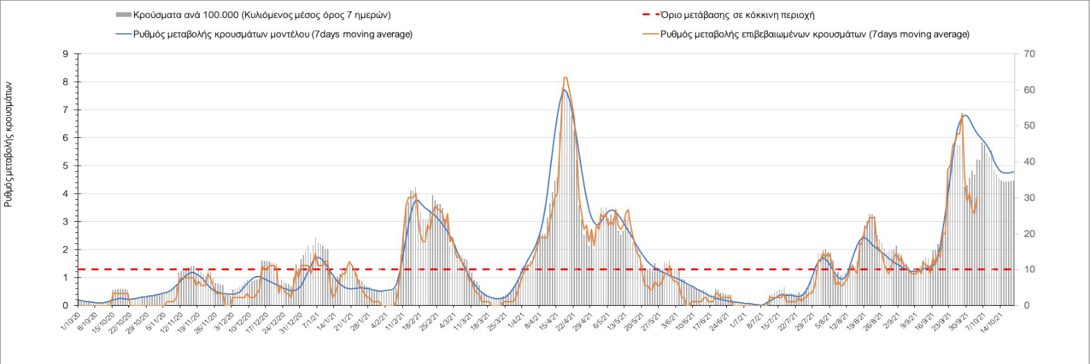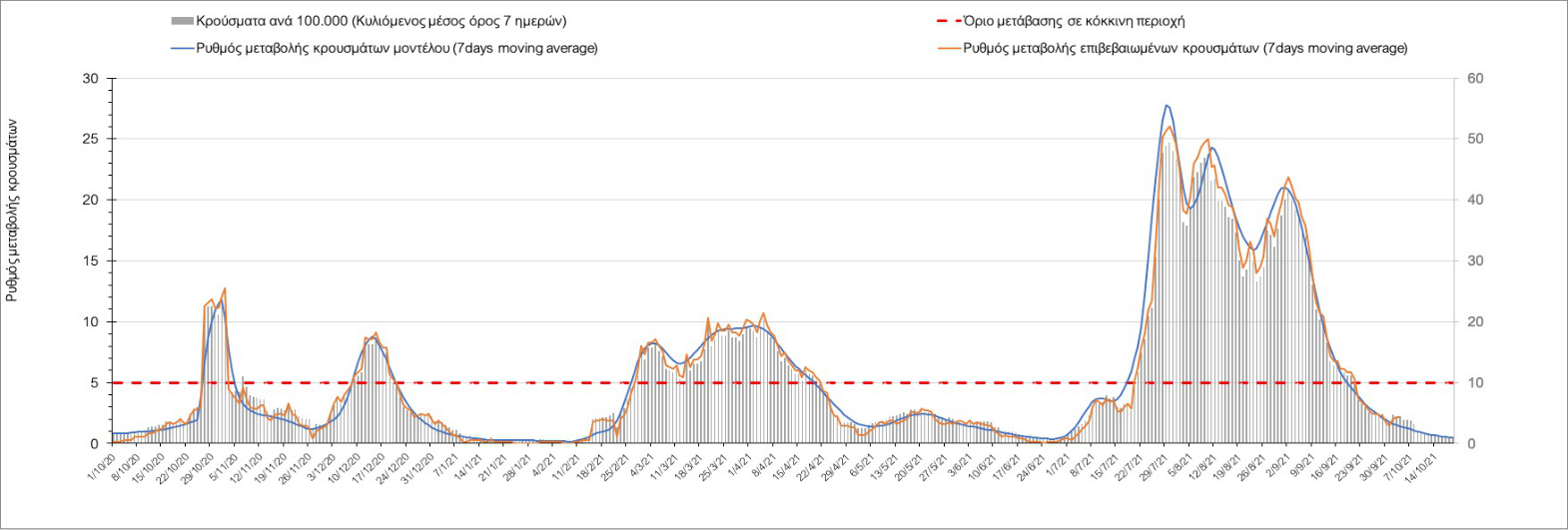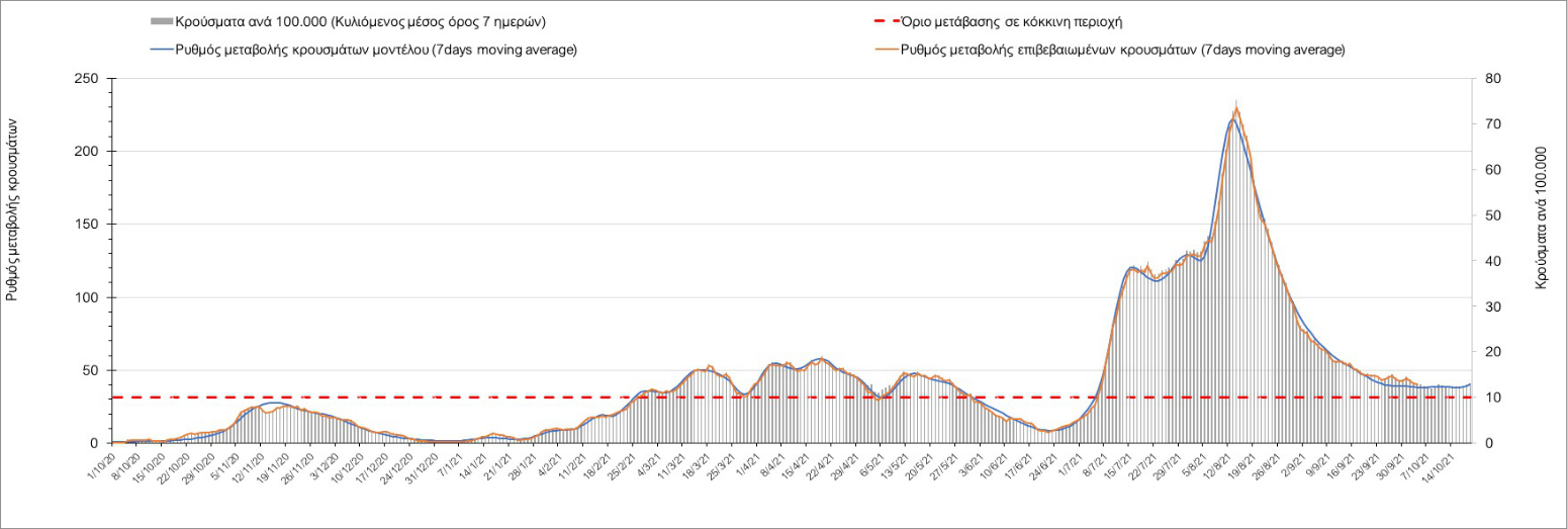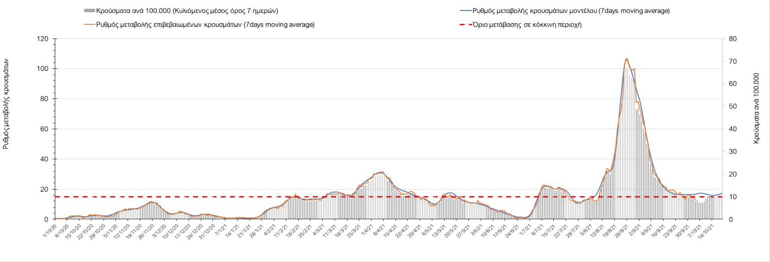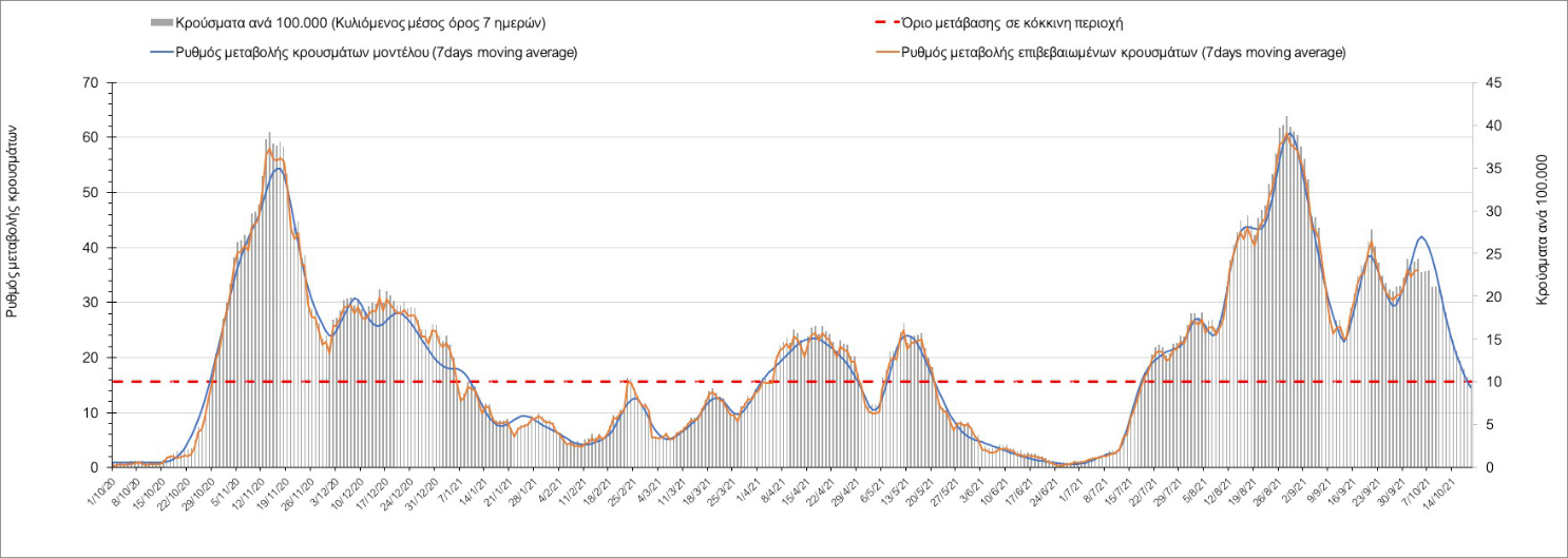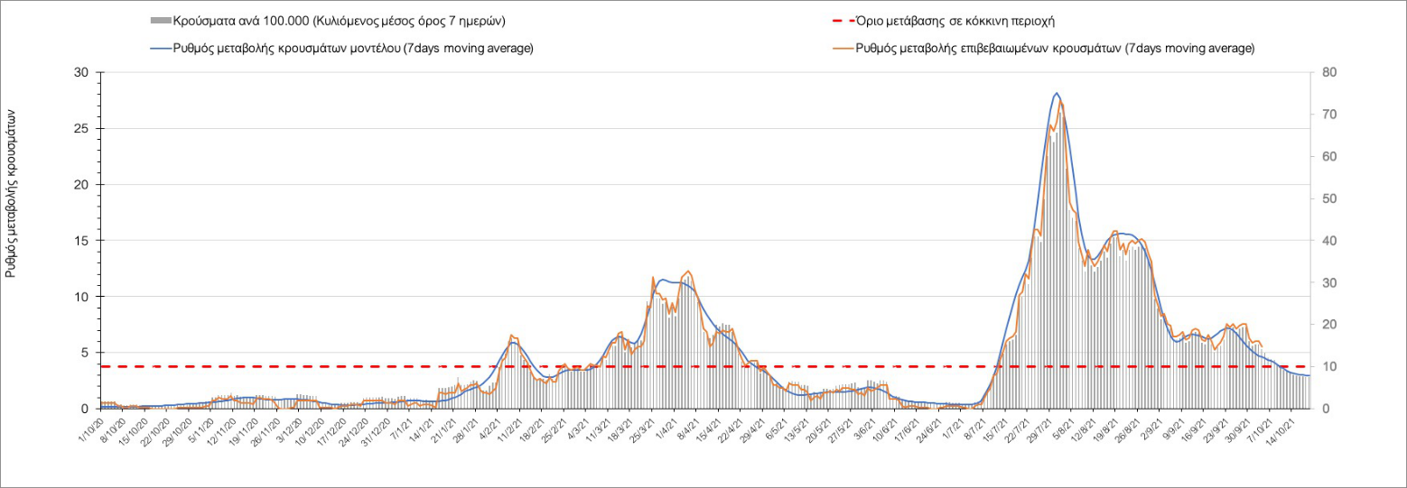 Αξίζει επίσης να σημειωθεί ότι οι υψηλές θερμοκρασίες των προηγουμένων ημερών, συντέλεσαν στη μείωση της μεταδοτικότητας και συνέβαλλαν στη συγκράτηση του αριθμού των κρουσμάτων.