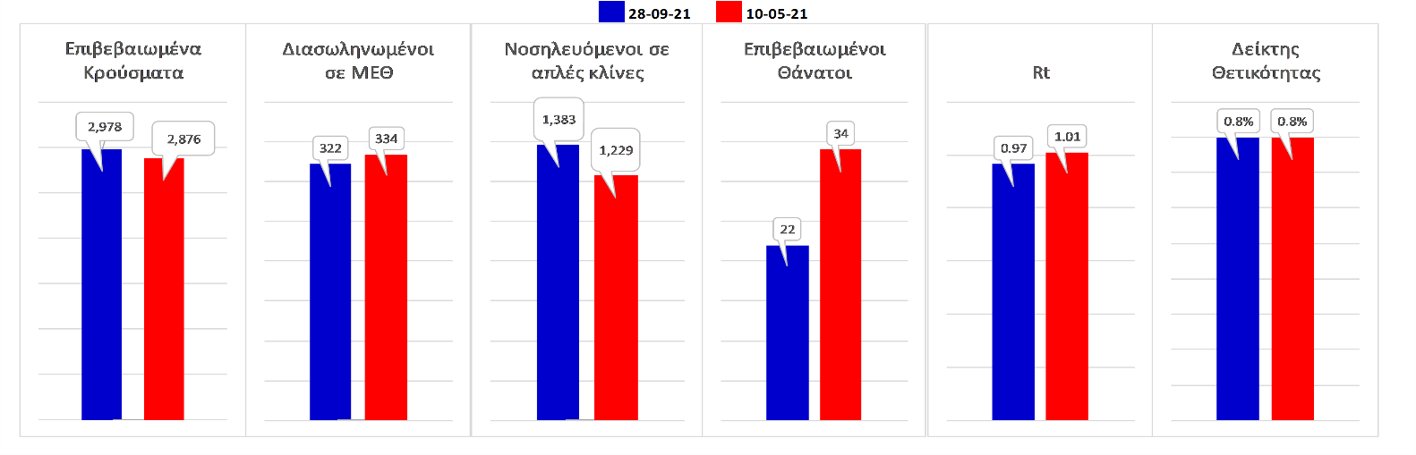 Σχήμα 58. Συγκριτικά αποτελέσματα της επιδημιολογικής εικόνας της σημερινής Τρίτης (05/10/2021) σε σχέση με το προηγούμενο (28/09/2021)
