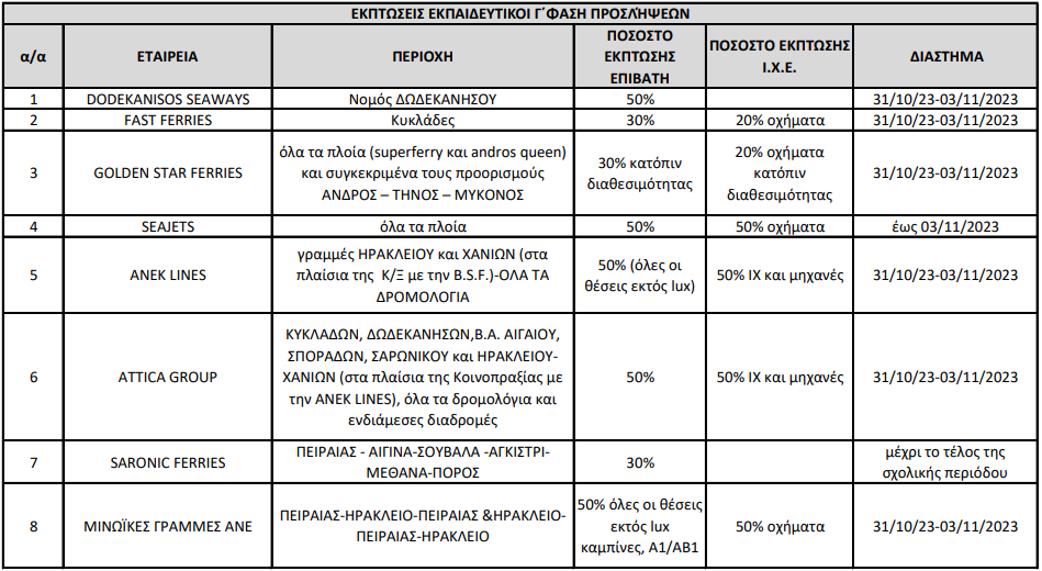 Με κοινή πρωτοβουλία των Υπουργείων Παιδείας, Θρησκευμάτων και Αθλητισμού και Ναυτιλίας και Νησιωτικής Πολιτικής, ανακοινώνονται εκπτώσεις έως και 50% στα ακτοπλοϊκά εισιτήρια των αναπληρωτών εκπαιδευτικών.