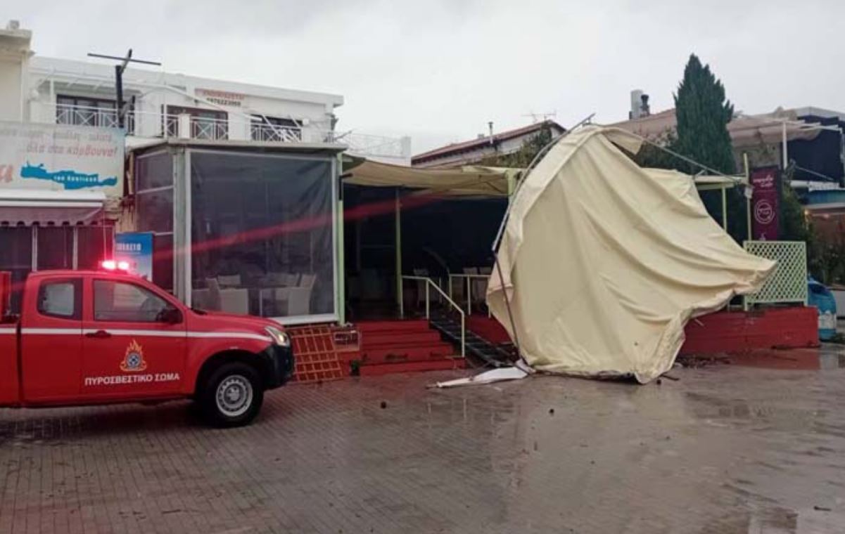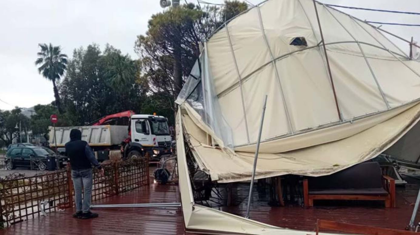 Ανεμοστρόβιλος ξήλωσε τέντες από καταστήματα στον Μαραθώνα