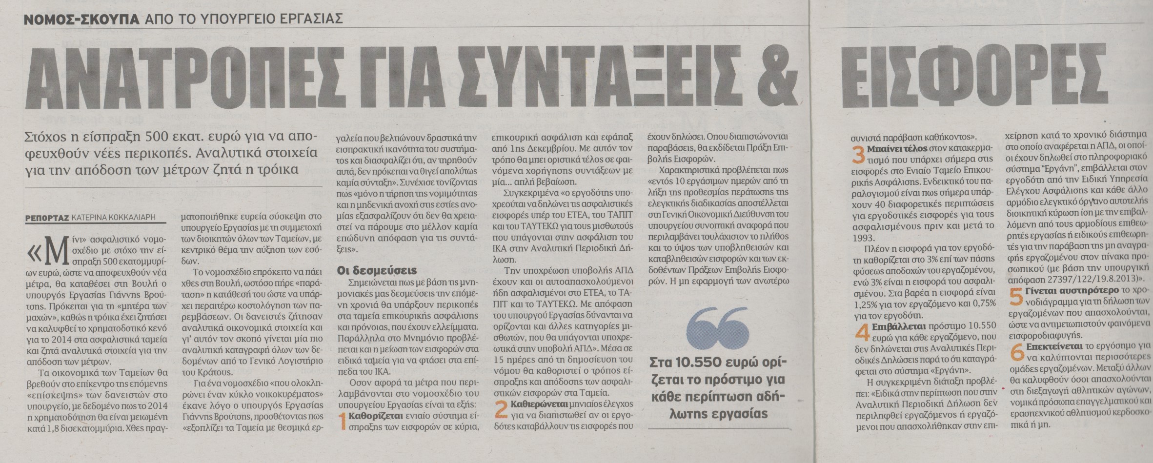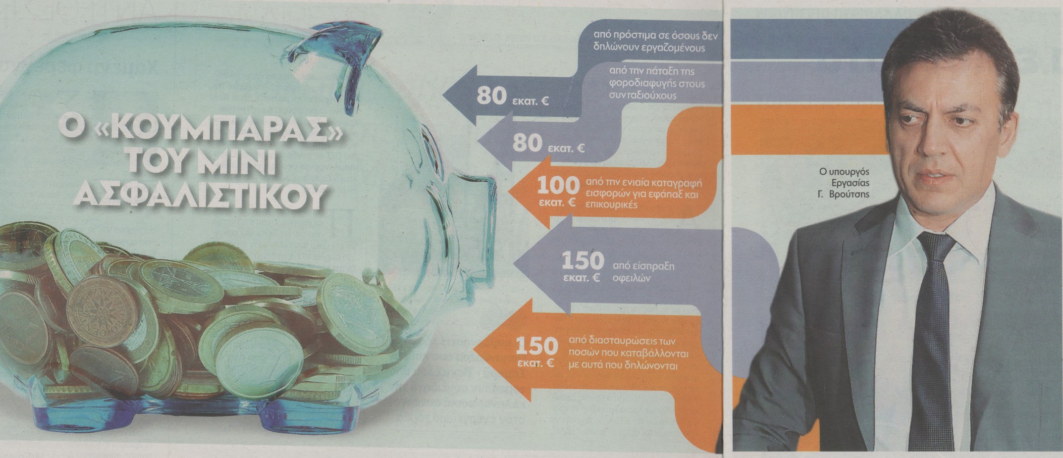 «Μίνι» ασφαλιστικό νομοσχέδιο, με στόχο την είσπραξη 500 εκατ. ευρώ, ώστε να αποφευχθούν νέα μέτρα, θα καταθέσει στη Βουλή ο υπουργός Εργασίας, Γιάννης Βρούτσης.