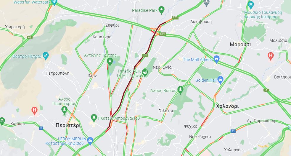 Ακινητοποιημένα είναι τα οχήματα στην Λεωφόρο Κηφισού στο ρεύμα προς Πειραιά στο ύψος του Περιστερίου λόγω του τροχαίου που σημειώθηκε νωρίς το πρωί της Τρίτης.