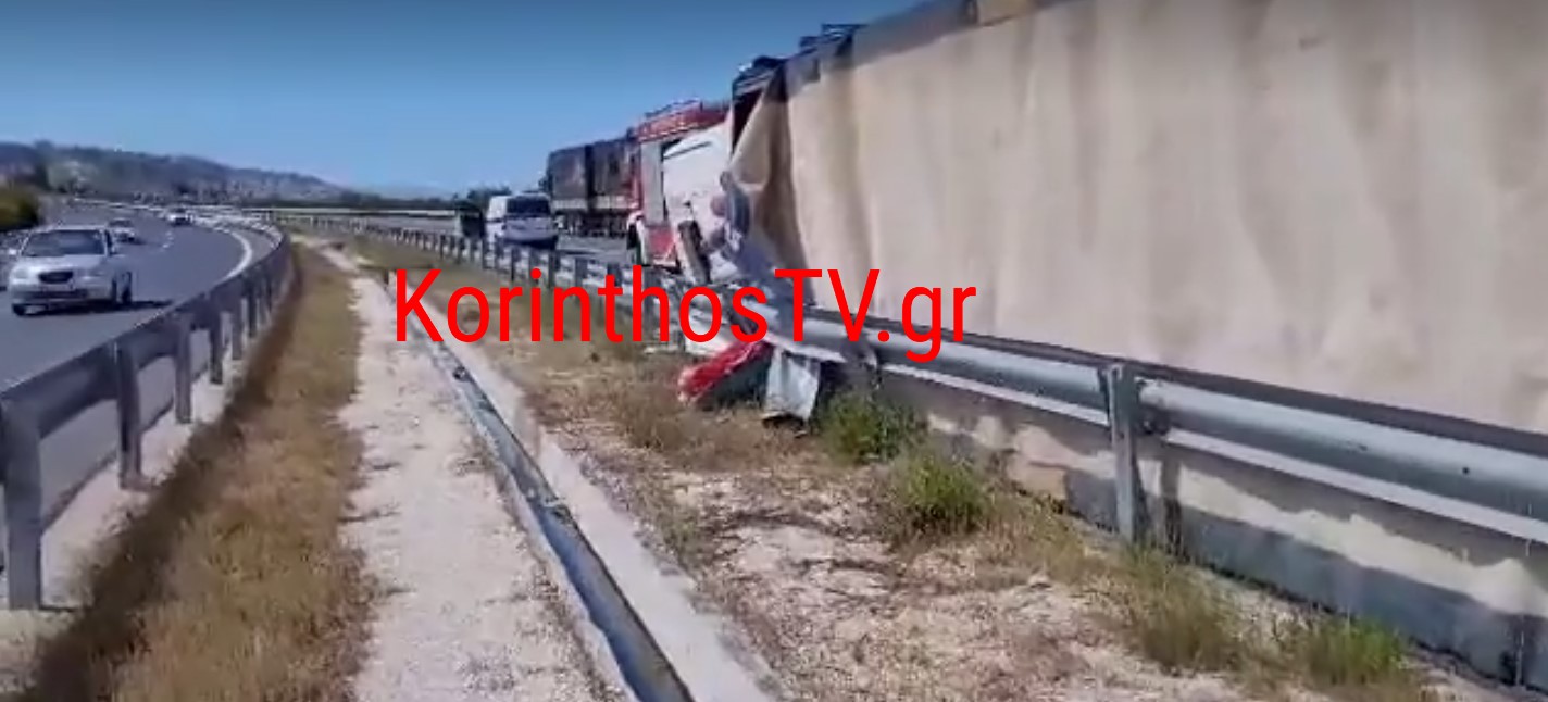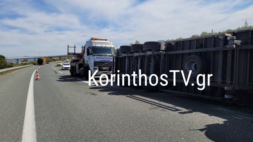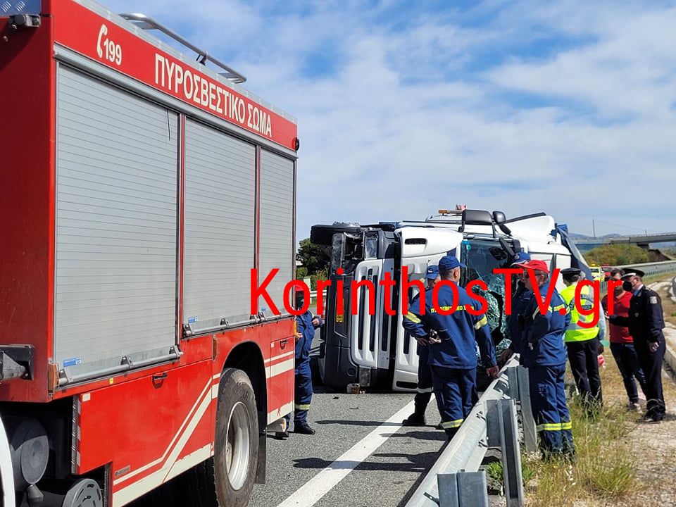 Τροχαίο ατύχημα σημειώθηκε το μεσημέρι της Τρίτης στο 101ο χιλιόμετρο της εθνικής οδού Κορίνθου – Πατρών στο ύψος του Βέλου Κορινθίας, όταν από άγνωστη μέχρι στιγμής αιτία, μία νταλίκα εξετράπη της πορείας της με αποτέλεσμα να ανατραπεί.