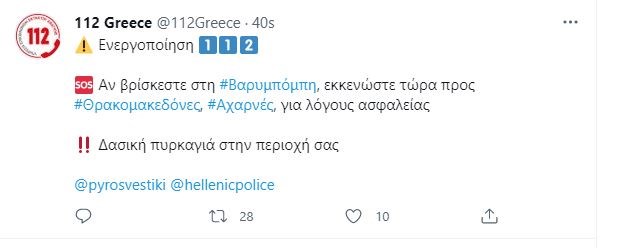 Αναζωπύρωση σημειώθηκε πριν από λίγο και στη Βαρυμπόμπη η οποία εκκενώνεται με νέο μήνυμα του 112. Το μήνυμα αναφέρει: «Αν βρίσκεστε στη Βαρυμπόμπη εκκενώστε τώρα προς Θρακομακεδόνες και Αχαρνές για λόγους ασφαλείας». Η αναζωπύρωση σύμφωνα με την Πυροσβεστική είναι πάνω από το αεροδρόμιο του Τατοΐου και καταβάλλονται προσπάθειες να μην πάρει μεγάλη έκταση η πυρκαγιά.