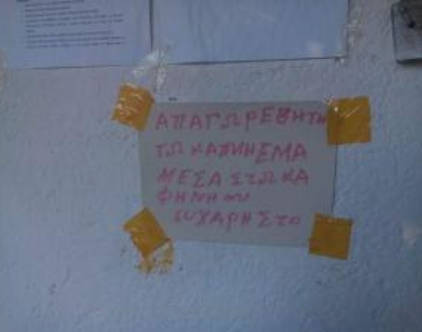 «ΑΠΑΓΩΡΕΒΗΤΗ ΤΩ ΚΑΠΝΗΣΜΑ ΜΕΣΑ ΣΤΩ ΚΑΦΕΝΗΟΥ. ΕΥΧΑΡΗΣΤΟ»